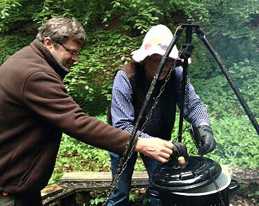 Kräuter sammeln und Neunkräutersuppe kochen bei der Köhlerhütte in Ritzerau im Mai 2014.